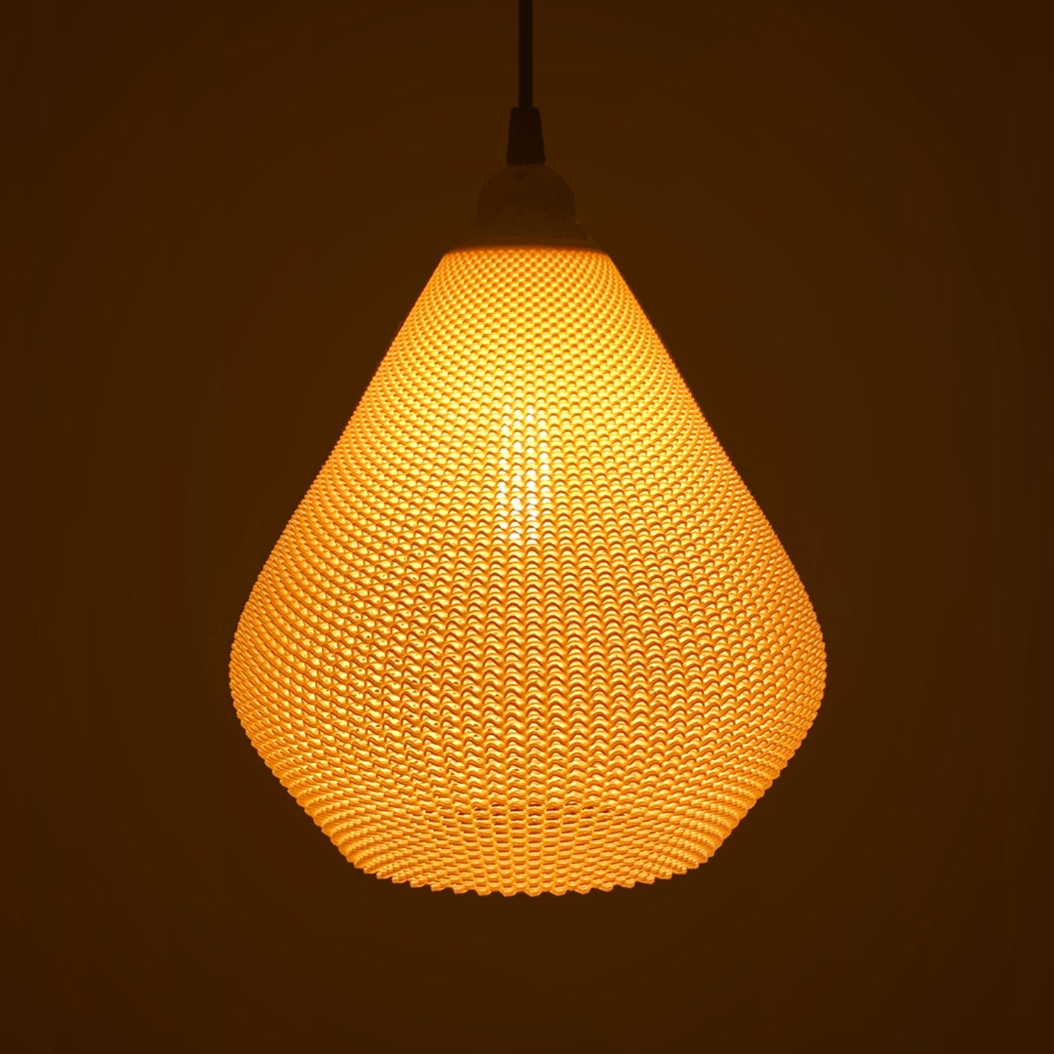 The AERO Pendant is a masterwork of texture, featuring thousands of tiny, interwoven layers that create an organic, yet precise, spiked surface. Its graceful, inverted teardrop shape balances modern simplicity with complex detail, diffusing light into a soft, mesmerizing cloud of ambient glow.